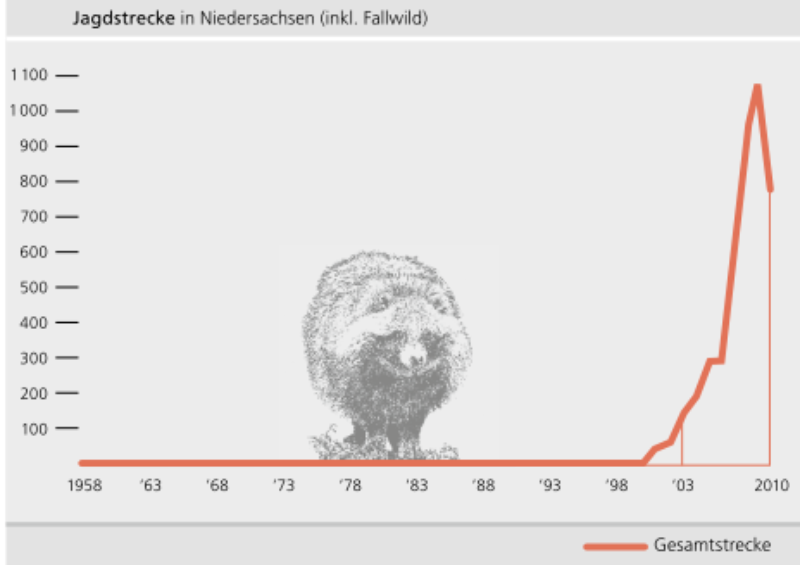In Niedersachsen berichten die Jagdstrecken zum Mardenhund noch im Jahr 2000: Fehlanzeige. Im Jahr 2001 wird